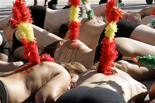[…] nel suo significato originale e radicale, barbaro non è colui che maltratta le bestie o non ne prova compassione, ma colui che non fa distinzione tra come vanno trattati gli uomini e come vanno trattate le bestie. Da questo punto di vista, la vera immagine di barbarie non è quella a cui assistiamo nella plaza de toros, ma quella che vediamo fuori, dove persone nude si sdraiano a terra e si ricoprono il corpo di false banderillas e di sangue finto per dare a intendere che uccidere un toro equivale a uccidere un essere umano.[1]