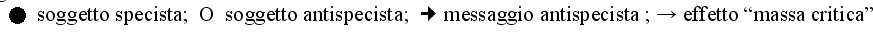 Il contributo di Sottofattori cerca di mostrare il limite di questo dibattito analizzando la natura dei soggetti che esso presuppone: a differenza di quanto sembrano credere sia la Perlo che Stzybel, osserva Sottofattori, il problema è risolvibile concretamente se si delineano in modo più preciso l’emittente e il destinatario del “messaggio antispecista”, laddove invece solitamente questi due soggetti rimangono indistinti (un generico “movimento”, da un lato, e un’altrettanto generica “opinione pubblica”, dall’altro). L’intervento di Sottofattori si segnala quindi soprattutto per il tentativo di proporre uno schema interpretativo più articolato del contesto in cui viene emesso e recepito il messaggio antispecista. Nella prospettiva di Sottofattori, se non erro, l’esigenza posta di ridurre tale messaggio ai soli AD si giustifica in funzione di una certa coerenza “strategica” che deve caratterizzare il movimento antispecista quando si fa carico di rappresentare le proprie istanze presso/contro le istituzioni.