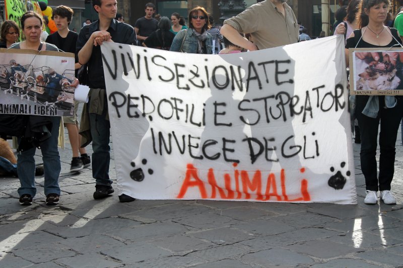 Qualcosa non torna. Così come purtroppo non torna la lapidaria asserzione secondo cui gli atteggiamenti poco “consoni” tenuti da alcuni – parecchi – attivisti su facebook (ricordo che dietro gli avatar ci sono persone reali, pienamente responsabili di quello che scrivono) e durante le manifestazioni sarebbero un fenomeno isolato e marginale, ascrivibile al cattivo carattere di qualcuno. Non si capisce come un movimento fatto in massima parte di persone equilibrate e compassionevoli abbia potuto scegliersi come vate, ad esempio, Mr. Gary Yourofsky, che sostiene da anni gli animali cavia dovrebbero essere sostituiti, negli esperimenti, da assassini, stupratori e pedofili [1]. O forse si capisce, leggendo qua e là qualche striscione.
