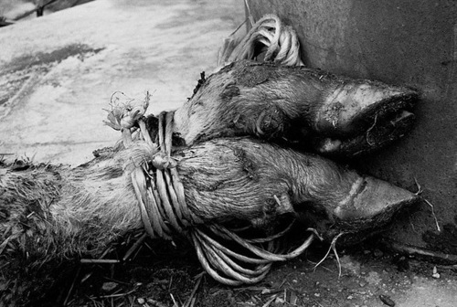 I crimini si possono nascondere, se ne può negare l’esistenza o ignorarla. Quando se ne chiede conto ai carnefici, essi possono negare che siano crimini, presentandone la più innocente “normalità”: legittimi in quanto normali, normali in quanto legittimi. Per tutti gli olocausti si è ripetuto e si ripete proprio lo stesso fenomeno psicosociologico. I campi di sterminio, come i macelli e i laboratori in cui si pratica la vivisezione, sono nascosti, lontani dalla vista della gente. L’odore e le urla della morte non devono inquietare gli animi dei mandanti. Così come ai tedeschi ignari il regime cercava inizialmente di negare l’esistenza della Soluzione Finale, allo stesso modo la società specista oggi cerca di convincere i bambini che la cotoletta nel piatto cresce sugli alberi e a chi non conosce le pratiche della ricerca biomedica si racconta che gli animali dei laboratori sono trattati bene, che non soffrono, che mangiano a volontà e che “si sacrificano” per il nostro bene. Quando foto e filmati arrivano al pubblico la risposta è una mistificazione: “non è come sembra”, “le immagini sono fotomontaggi”, “e comunque non c’è alternativa”: tutto viene fatto per il bene di quelli “che contano”, siano essi tutti gli esseri umani o solo gli ariani. Si usano le stesse tattiche argomentative per denigrare le vittime e magnificare i carnefici. Così gli zingari diventano subumani, i maiali lerci, gli ebrei malvagi, i polli stupidi, gli handicappati indegni di vivere, i topi divoratori di raccolti, mentre gli uomini emergono come la specie eletta dal loro dio per sottomettere la natura, e gli ariani come razza superiore destinata a dominare il mondo per incarico del loro Führer.